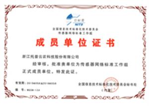 全國信息技術(shù)標(biāo)準(zhǔn)化技術(shù)委員會(huì)傳感器網(wǎng)絡(luò)標(biāo)準(zhǔn)工作組成員單位證書