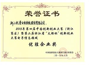 第四屆中國創(chuàng)新創(chuàng)業(yè)大賽(浙江賽區(qū))暨第二屆浙江省“火炬杯”創(chuàng)新創(chuàng)業(yè)大賽電子信息領(lǐng)域優(yōu)勝企業(yè)獎(jiǎng)