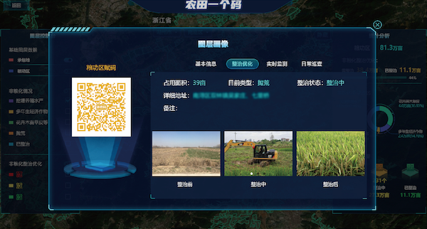 構(gòu)建“一田一碼”,對農(nóng)田地塊進(jìn)行賦碼,以“農(nóng)田碼”貫穿規(guī)劃選址、竣工驗(yàn)收、項目管護(hù)、農(nóng)田種植等全過程數(shù)據(jù),構(gòu)建“碼上監(jiān)管”"碼上服務(wù)”等業(yè)務(wù)場景,實(shí)現(xiàn)全周期串聯(lián),清晰掌提高標(biāo)準(zhǔn)農(nóng)田建設(shè)全空間、全要素、全過程信息,做到“事前事中可預(yù)警”“全程信息可追溯”。