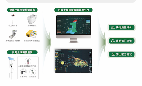 在土地平整、農(nóng)田整治的基礎(chǔ)上,利用耕地質(zhì)量監(jiān)測智能化裝備與土壤傳感器體系采集土壤理化相關(guān)指標(biāo)、土壤含水量、區(qū)域農(nóng)業(yè)氣象等數(shù)據(jù),實(shí)現(xiàn)田間地情、肥情、環(huán)情、墑情的監(jiān)測分析。聯(lián)動應(yīng)用區(qū)域土壤質(zhì)量跟蹤管理平臺,為耕地監(jiān)管單位建立數(shù)字化管理體系,實(shí)現(xiàn)高標(biāo)農(nóng)田耕地質(zhì)量的長效化、動態(tài)化、智能化監(jiān)測與管理。