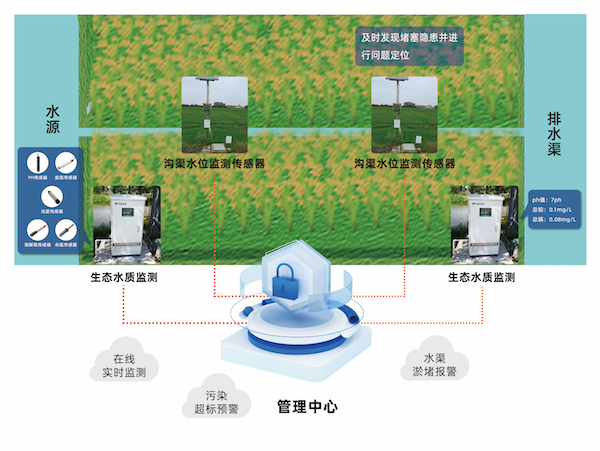水是農(nóng)業(yè)生產(chǎn)的生命線,通過應(yīng)用物聯(lián)網(wǎng)水質(zhì)監(jiān)測系統(tǒng)、配備溝渠水位監(jiān)測系統(tǒng),實(shí)時監(jiān)測水質(zhì)PH值、溶解氧、氨氮等關(guān)鍵指標(biāo),監(jiān)測水渠水位變化,聯(lián)動物聯(lián)網(wǎng)平臺及時發(fā)布水質(zhì)污染超標(biāo)、水渠淤堵等預(yù)警信息,減少因水資源污染和洪澇災(zāi)害對高標(biāo)準(zhǔn)農(nóng)田造成的經(jīng)濟(jì)損失。