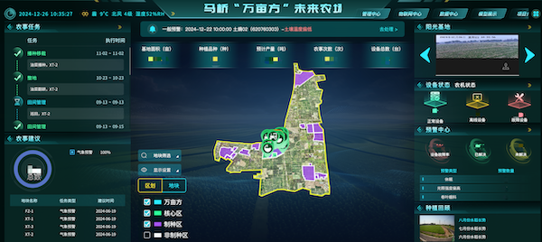 由浙江托普云農(nóng)科技股份有限公司(股票簡(jiǎn)稱:托普云農(nóng),股票代碼:301556)提供技術(shù)支撐的“萬(wàn)畝方智慧大腦”是實(shí)現(xiàn)未來(lái)農(nóng)場(chǎng)管理的核心。農(nóng)事服務(wù)中心的大屏上,“智慧大腦”正實(shí)時(shí)監(jiān)測(cè)著田間的作物長(zhǎng)勢(shì)和病蟲害情況,并為農(nóng)事生產(chǎn)提供著氣象預(yù)警、遙感監(jiān)控查看、農(nóng)事任務(wù)下發(fā)等服務(wù),展現(xiàn)出滿滿的“科技感”。