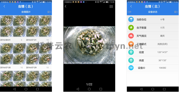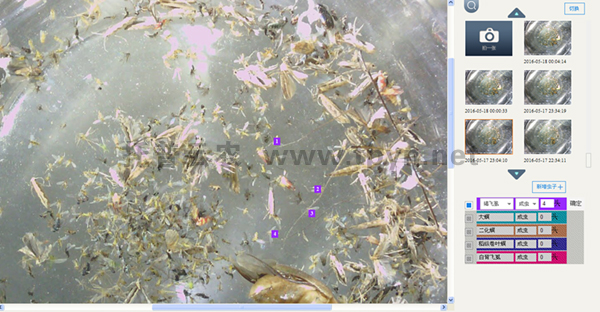 通過(guò)遠(yuǎn)程可拍照式蟲情測(cè)報(bào)燈采集到的蟲情照片,可設(shè)置拍照時(shí)間定時(shí)上傳,也可隨時(shí)遠(yuǎn)程拍照,即拍即看。高清照片清晰查看蟲情狀況,更有蟲情識(shí)別軟件自動(dòng)識(shí)別稻飛虱、二化螟等水稻類蟲害,自動(dòng)計(jì)數(shù)。