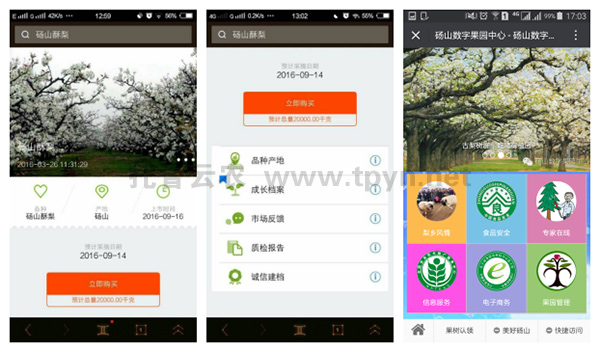 消費者可眾籌認領果樹,通過手機查看酥梨的生長環(huán)境、農(nóng)事管理(用肥用藥情況)、采摘等環(huán)節(jié),不僅能吃到放心無公害的水果,還可以參與體驗到果園種植管理中去。
