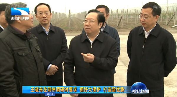 2016年11月,湖北省委副書記、代省長(zhǎng)王曉東在荊州市市委書記李新華、市長(zhǎng)楊智等領(lǐng)導(dǎo)陪同下蒞臨金秋農(nóng)業(yè)智能化葡萄示范基地調(diào)研現(xiàn)代農(nóng)業(yè)發(fā)展情況。饒有興趣的參觀了"智能化中心"水肥一體化設(shè)施,了解托普云農(nóng)水肥一體化的精準(zhǔn)生產(chǎn)過(guò)程。
