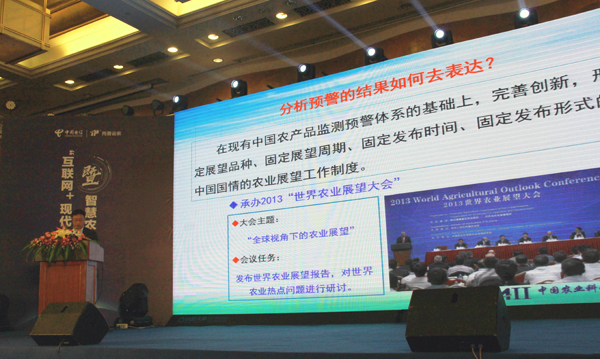 例如我在做農(nóng)業(yè)展望大會(huì)就是一個(gè)出口,所謂農(nóng)業(yè)展望就是在監(jiān)測(cè)預(yù)警的基礎(chǔ)上,形成固定展望的品種,固定展望的周期,固定發(fā)布的時(shí)間,固定發(fā)布形式的一個(gè)工作制度。澳大利亞1977年開始做展望大會(huì),開到3月8號(hào)到今年舉行了46屆。中國(guó)從2013年開始承辦世界農(nóng)業(yè)展望大會(huì), 2017年展望大會(huì)是4月20號(hào)-21號(hào)在北京國(guó)際會(huì)議中心開,預(yù)計(jì)規(guī)模800人。展望大會(huì)是中國(guó)的貿(mào)易權(quán),中國(guó)數(shù)據(jù)獲取能力、數(shù)據(jù)分析能力的一次體現(xiàn),歡迎大家來參加。