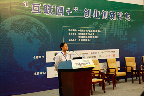 11月8日下午,以“互聯(lián)網(wǎng)+”為主題的創(chuàng)業(yè)創(chuàng)新沙龍?jiān)诟=ㄊ「V菔泻{國(guó)際會(huì)展中心隆重舉行。沙龍由中國(guó)國(guó)際農(nóng)產(chǎn)品交易會(huì)組委會(huì)主辦,由農(nóng)業(yè)部信息中心承辦。農(nóng)業(yè)部市場(chǎng)與經(jīng)濟(jì)信息司陳萍副司長(zhǎng)、農(nóng)業(yè)部信息中心張興旺主任出席并致辭,農(nóng)業(yè)部信息中心吳秀媛副主任出席活動(dòng)。另有諸多農(nóng)學(xué)專家和行業(yè)領(lǐng)軍企業(yè)也參與其中,分享互聯(lián)網(wǎng)創(chuàng)業(yè)創(chuàng)新經(jīng)驗(yàn),共同探討“互聯(lián)網(wǎng)+農(nóng)業(yè)”的發(fā)展模式。