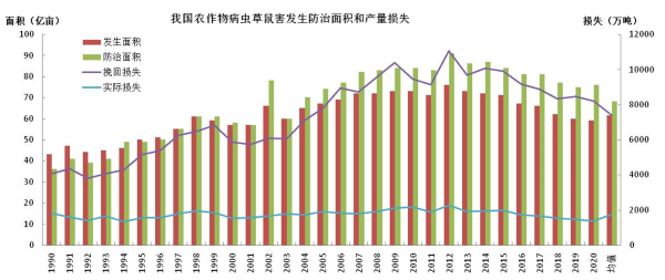 近期,全國農技中心組織科研、教學和推廣單位專家,對2021年全國農作物重大病蟲害發(fā)生趨勢進行分析會商。會議綜合分析了病蟲源基數、種植制度、作物布局和氣候等因素,預計2021年農作物重大病蟲害呈重發(fā)態(tài)勢,全國發(fā)生面積14.45億畝次,同比增加19.2%。