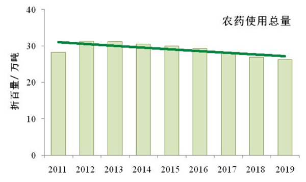 病蟲害是危害糧食安全的主要因素之一,目前針對病蟲害防治仍然以化學農藥為主。但是近年來,由于農業(yè)部啟動實施《化肥農藥使用量零增長行動方案》,化學農藥使用的總用量持續(xù)下降。2011—2019年農藥使用總量(折百量)由31.3萬噸下降到26.3萬噸。2020年我國農藥使用總量為26萬噸左右(折百量,估測值)。預計2021年農藥使用量需求與2020年基本持平。