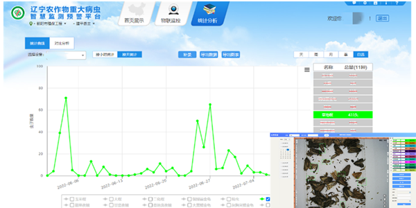 遼寧省智慧農(nóng)業(yè)云平臺7月檢測到的草地螟數(shù)據(jù)圖