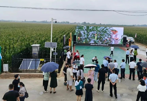 與會代表現(xiàn)場觀摩托普云農(nóng)支撐建設(shè)的“噸半糧”高標(biāo)準(zhǔn)農(nóng)田核心示范區(qū)