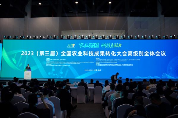10月27日,2023(第三屆)全國農(nóng)業(yè)科技成果轉(zhuǎn)化大會(huì)在成都盛大開幕。同期,第九屆四川農(nóng)業(yè)博覽會(huì)·成都國際都市現(xiàn)代農(nóng)業(yè)博覽會(huì)同地舉行。本屆大會(huì)以“農(nóng)業(yè)強(qiáng)國 科技驅(qū)動(dòng)”為主題,涵蓋1場(chǎng)高級(jí)別全體會(huì)議,1場(chǎng)近萬平米成果展會(huì),13個(gè)專場(chǎng)活動(dòng),聚焦糧食安全與農(nóng)機(jī)裝備、鄉(xiāng)村振興與農(nóng)業(yè)產(chǎn)業(yè)、綠色農(nóng)業(yè)與食品產(chǎn)業(yè)、農(nóng)業(yè)科技成果轉(zhuǎn)化與知識(shí)產(chǎn)權(quán)等領(lǐng)域,圍繞科技協(xié)同創(chuàng)新、成果轉(zhuǎn)化先進(jìn)經(jīng)驗(yàn)與模式等研討交流、分享經(jīng)驗(yàn)、共謀思路。
