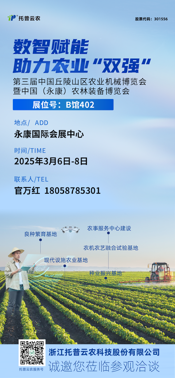 展會預(yù)告丨托普云農(nóng)邀您共赴第三屆中國(永康)農(nóng)林裝備博覽會
