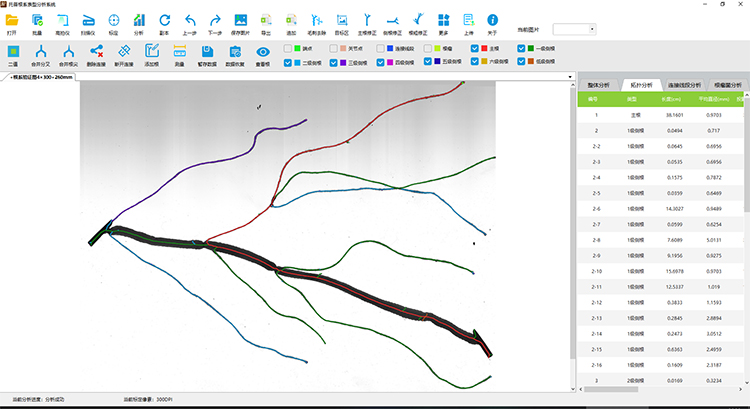 根系連接分析參數(shù):分支角度、連接數(shù)量、各段詳細(xì)參數(shù)等