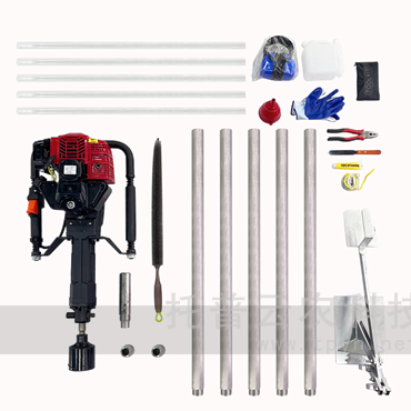 汽油動(dòng)力發(fā)動(dòng)機(jī)一臺(tái),發(fā)動(dòng)機(jī)工具包一套,標(biāo)準(zhǔn)土壤鉆頭1個(gè)、硬質(zhì)土鉆頭1個(gè)任選,1米的鉆桿5根(根據(jù)需要另加)、不小于1米的塑料樣品管2根,刮刀、膠錘、老虎鉗、耳機(jī)、5M卷尺、手套、清潔刷各1個(gè),專用提取設(shè)備1套、工業(yè)塑料運(yùn)輸箱1個(gè)