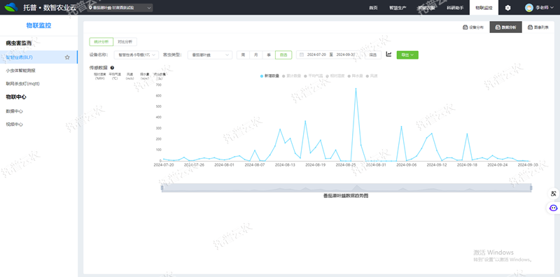 3、AI識別計數(shù),實(shí)時監(jiān)測:AI識別番茄潛葉蛾,自動計數(shù),準(zhǔn)確率高達(dá)95%以上,自動生成番茄潛葉蛾發(fā)生趨勢圖。